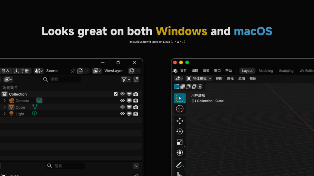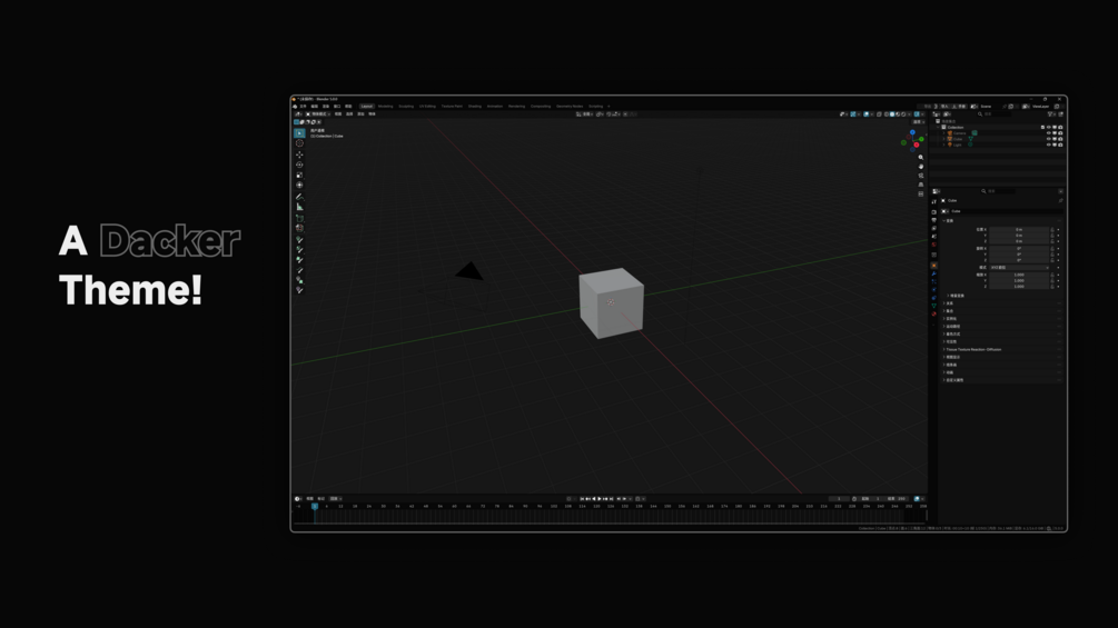 这个Blender主题是萌哥根据 Blender Dark 主题进行了调整,主题会比 Blender Dark 更深一些